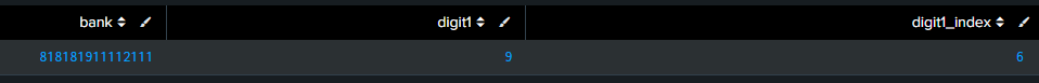 What could go wrong? Maybe we should check that mvfind returns the first occurrence of digit1. So we check the docs: "If a match exists, the index of the first matching value is returned", sounds good. We can double check by testing with a different bank (notice the 2nd 9):